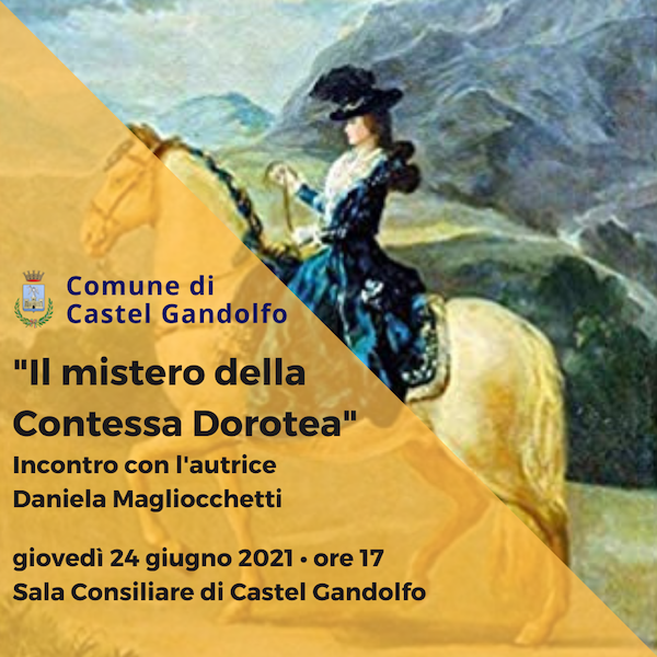 La presentazione del romanzo “Il mistero della Contessa Dorotea” si terrà giovedì 24 giugno alle ore 17 nella Sala Consiliare del Comune di Castel Gandolfo insieme all’autrice Daniela Magliocchetti e al giornalista Stefano Cortelletti.