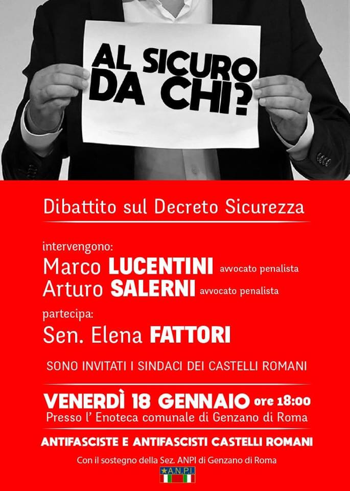 Il dibattito è organizzato dall’Assemblea Antifascista dei Castelli Romani, con il sostegno della Sezione ANPI “Salvatore Capogrossi” di Genzano di Roma.