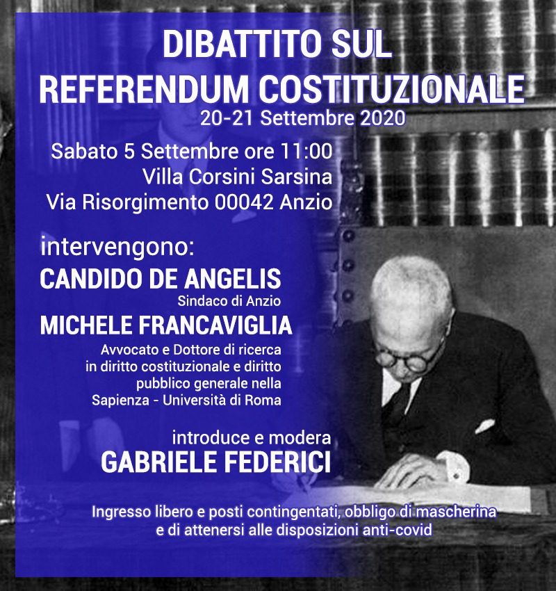 ““DIBATTITO SUL REFERENDUM COSTITUZIONALE 20-21 SETTEMBRE 2020”,