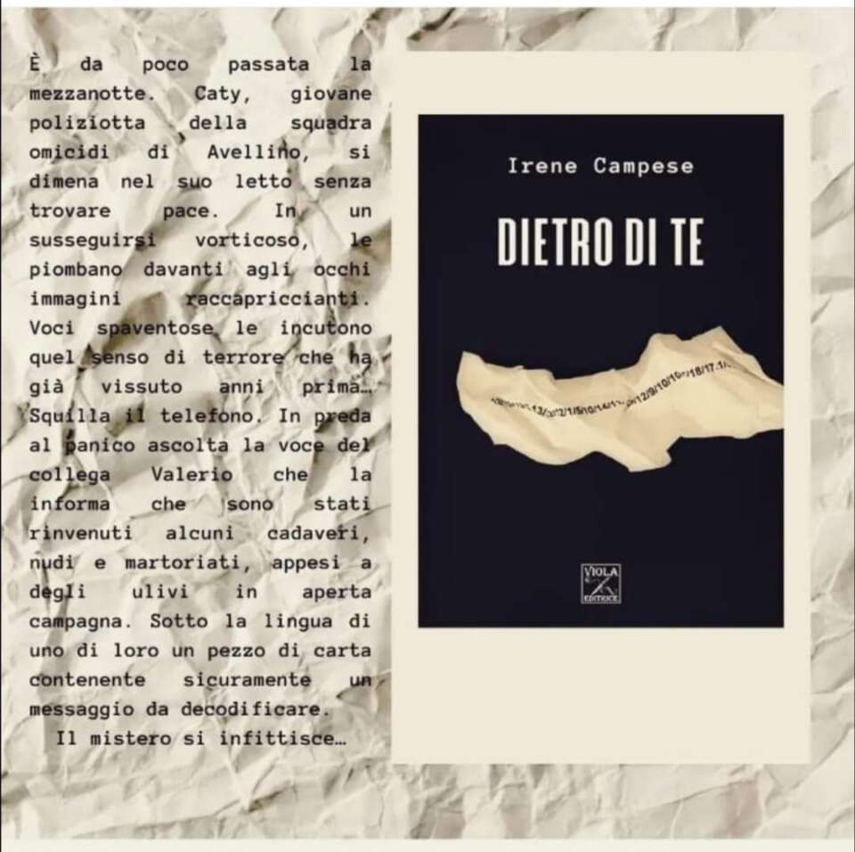 Irene Campese nasce ad Avellino nel 1987. Nel 2018, dopo la laurea in giurisprudenza, intraprende la pratica forense abilitandosi all’esercizio della professione. Superato il concorso come assistente giudiziario, vive e lavora a Roma presso il Tribunale ordinario. “Dietro di te” è la sua opera di esordio.