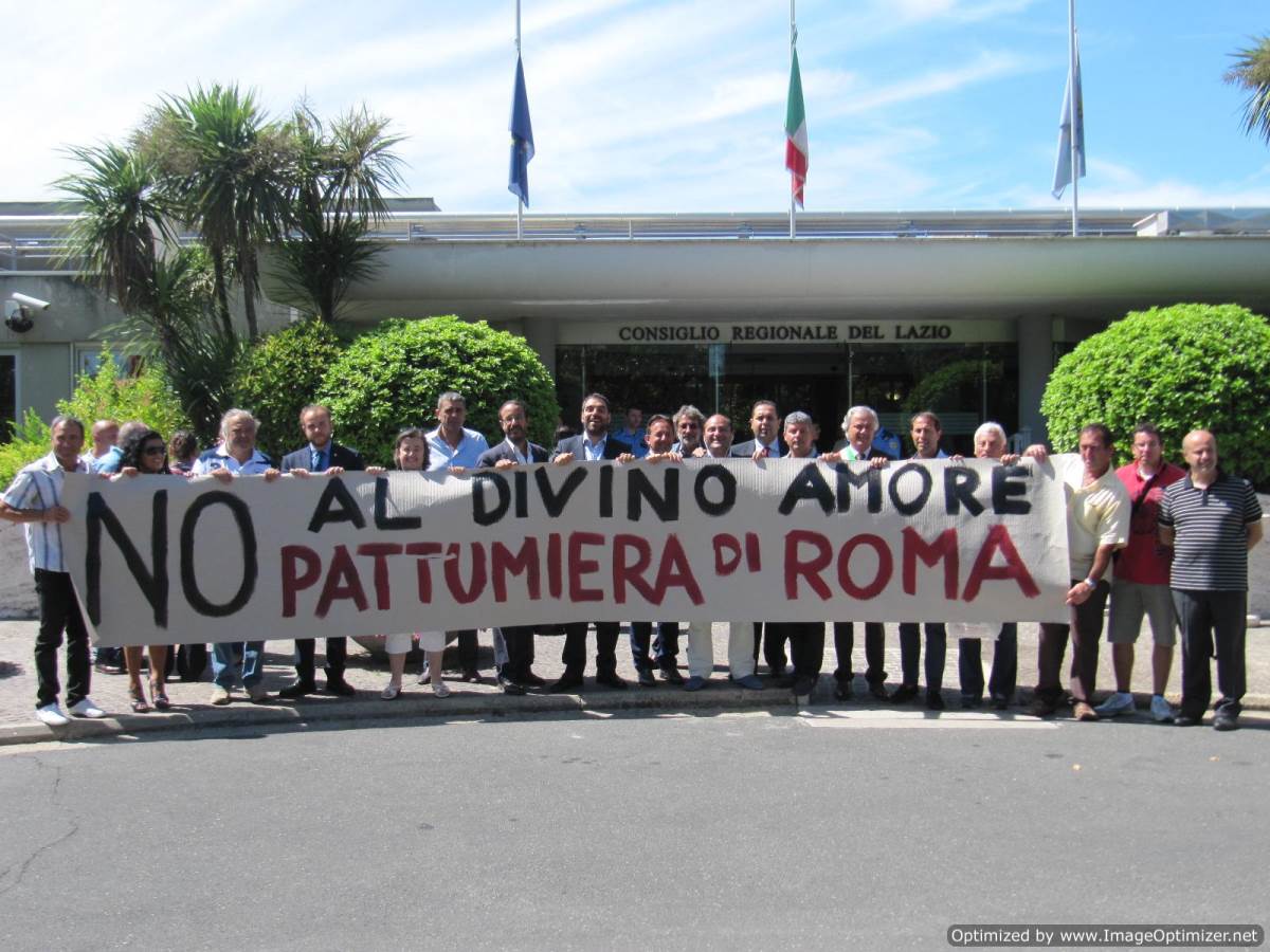 Questa mattina una delegazione del comune di Marino capeggiata dal presidente del Consiglio comunale Stefano Cecchi si è recata nella sede del Consiglio Regionale del Lazio per protestare apertamente contro l’ipotesi di aprire una discarica in località Falcognana, area che ricade nel Municipio IX di Roma proprio a confine con il territorio di Marino. Già ieri il Consiglio comunale aveva votato all’unanimità una mozione d’urgenza per dire no al sito in prossimità della via Ardeatina, così come, in queste ore, anche altri comuni dei Castelli romani interessati dalla questione, tra cui Castel Gandolfo, Albano e Ciampino, sembrerebbero aver aperto un dibattito in merito alla vicenda, pronti anche loro ad adottare una mozione e ad affiancare Marino e il Municipio IX su questa battaglia. Prima della seduta di questa mattina del Consiglio Regionale alcuni consiglieri regionali, tra cui l’ex sindaco di Marino Adriano Palozzi, il presidente Cecchi, il consigliere comunale di Marino Massimo Prinzi, il vice sindaco di Castel Gandolfo, Giacomo Moianetti, e una rappresentanza di cittadini del Municipio IX di Roma, hanno posato davanti alle telecamere e ai flash dei fotografi tenendo uno striscione sul quale c’era riportata la scritta “NO ALLA DISCARICA”. Su un altro si leggeva invece “NO AL DIVINO AMORE PATTUMIERA DI ROMA”. Insomma un coro di no si è levato anche dai banchi di via della Pisana nonostante le difficoltà manifestate dal presidente dell’Assemblea Leodori di inserire in corso di Consiglio all’ordine del giorno un punto sulla questione della discarica della
