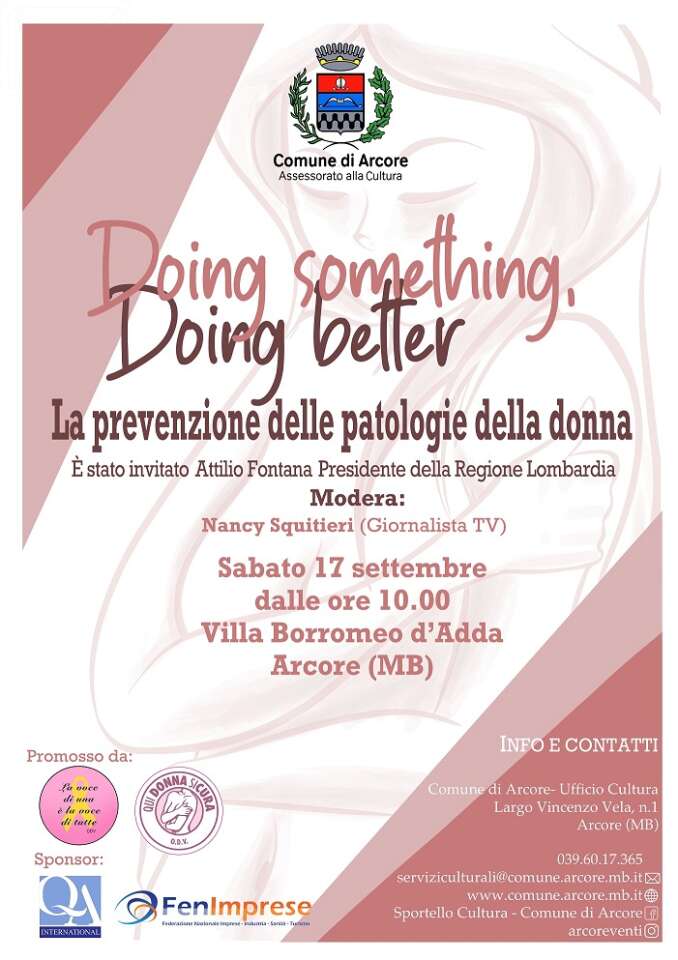 Si svolgerà sabato 17 settembre, a partire dalle ore 10, a Villa Borromeo d’Adda ad Arcore (Monza Brianza) il convegno “Doing something, doing better – La prevenzione delle patologie della donna”. Si tratta di un’iniziativa a carattere divulgativo sull’endometriosi e altre patologie della donna.
