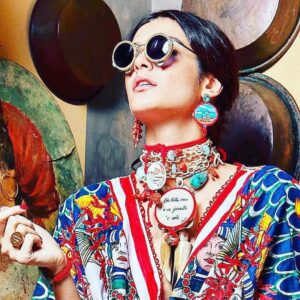 “Grazie Ilaria per l’invito su Meta Magazine. Sto benissimo nonostante il caldo asfissiante. Le mie nuove collezioni vanno a ruba. La gente ama l’estro e l’originalità. Ho creato tantissimi occhiali estivi coloratissimi e dalle forme grandi e geometriche”.