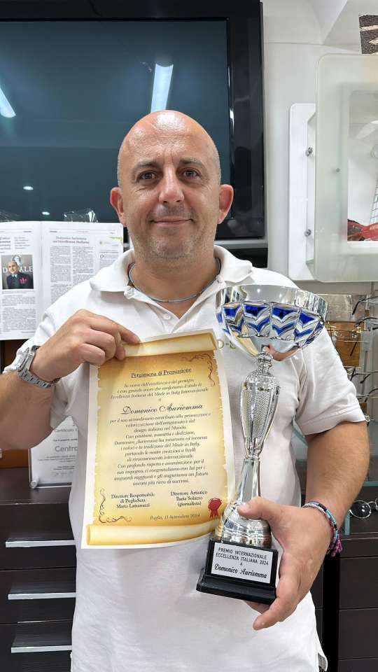 Nel panorama mondiale del lusso e della moda, pochi nomi riescono a risplendere di eleganza e autenticità come quello di Domenico Auriemma, recentemente insignito dell’ennesimo premio per il 2024. Un riconoscimento che lo ha proclamato “re” del Made in Italy nel mondo. Sulla pergamena che accompagna il premio si legge “In nome dell’eccellenza e del prestigio, è con grande onore che conferiamo il titolo di Eccellenza Italiana del Made in Italy Internazionale a Domenico Auriemma per il suo straordinario contributo alla promozione e valorizzazione dell’artigianato e del design italiano nel mondo”. E ancora:” Con passione, maestria e dedizione, Domenico Auriemma incarna valori e tradizione del Made in Italy, portando le nostre creazioni a livelli eccelsi, tanto da meritarsi di riconoscimento internazionale. Con profondo rispetto e ammirazione per il suo impegno, ci congratuliamo con lui per i traguardi raggiunti e gli auguriamo un futuro ancora più ricco di successi”.