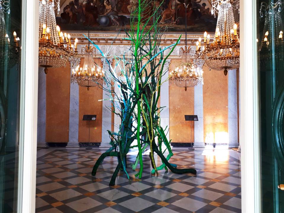Intanto, fino al 10 gennaio 2021, sempre presso il complesso museale di Villa Torlonia, si potrà ammirare la mostra “Rami” della romana Veronica Montanino con diverse opere realizzate site-specific. Il Casino Nobile conduce lo spettatore attraverso le “metamorfosi” di una “nuova” natura, di personale invenzione, trasformata per mezzo dei materiali più disparati. Un tema che ben si sposa con gli affreschi mitologici della Villa (estratti dalle storie di Apuleio), oltre che essere il “principio ordinatore” della miscellanea con cui la Montanino, grazie al camouflage, dà luogo a un’inedita “Ecologia dell’immagine”.