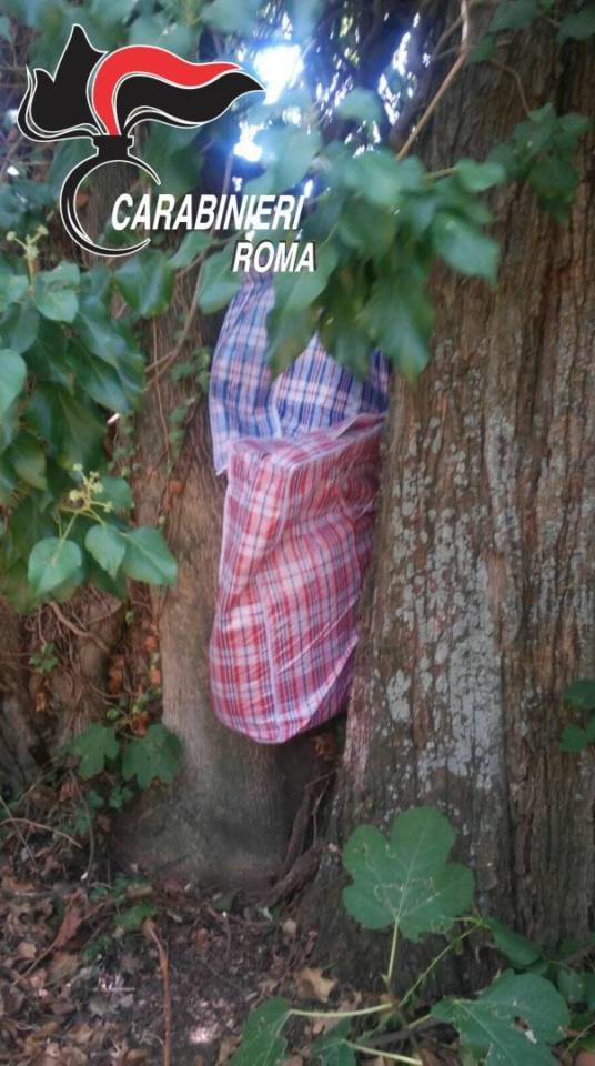 Allertati da un passante che ha notato due grossi borsoni incastrati tra due alberi in un terreno agricolo, i Carabinieri del Nucleo Operativo della Compagnia di Frascati hanno rinvenuto e sequestrato 21 kg di marijuana.