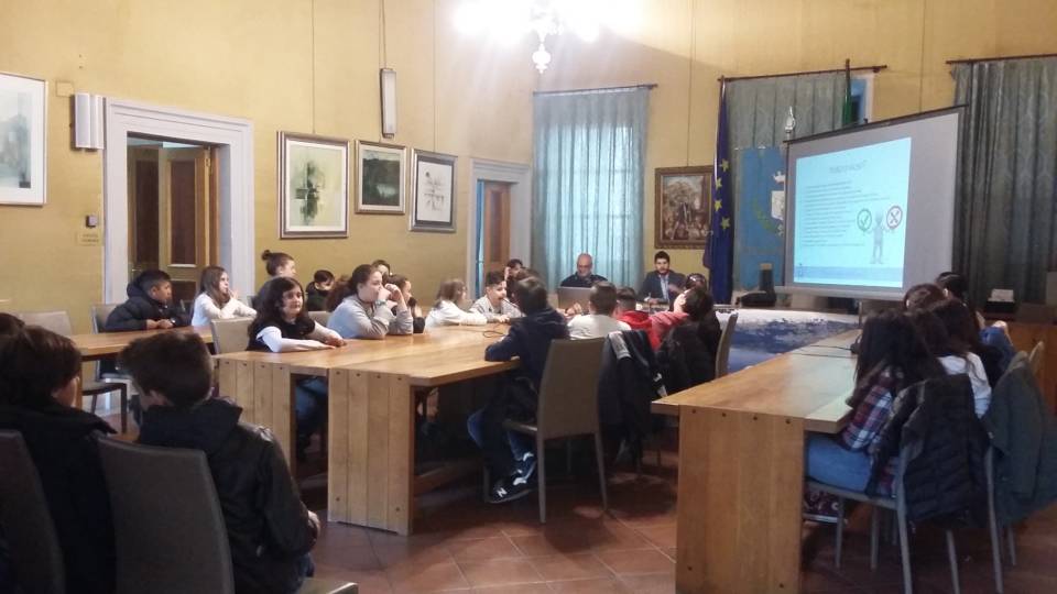 Tappa in Comune e incontro con il Sindaco Daniele Lorenzon per i ragazzi delle classi quarte e quinte della scuola Landi e delle prime della scuola Garibaldi. L’iniziativa fa parte del progetto ‘Educazione alla legalità’ promosso dallo stesso Istituto che affronta e sviluppa l’educazione alla legalità e la conoscenza delle istituzioni.