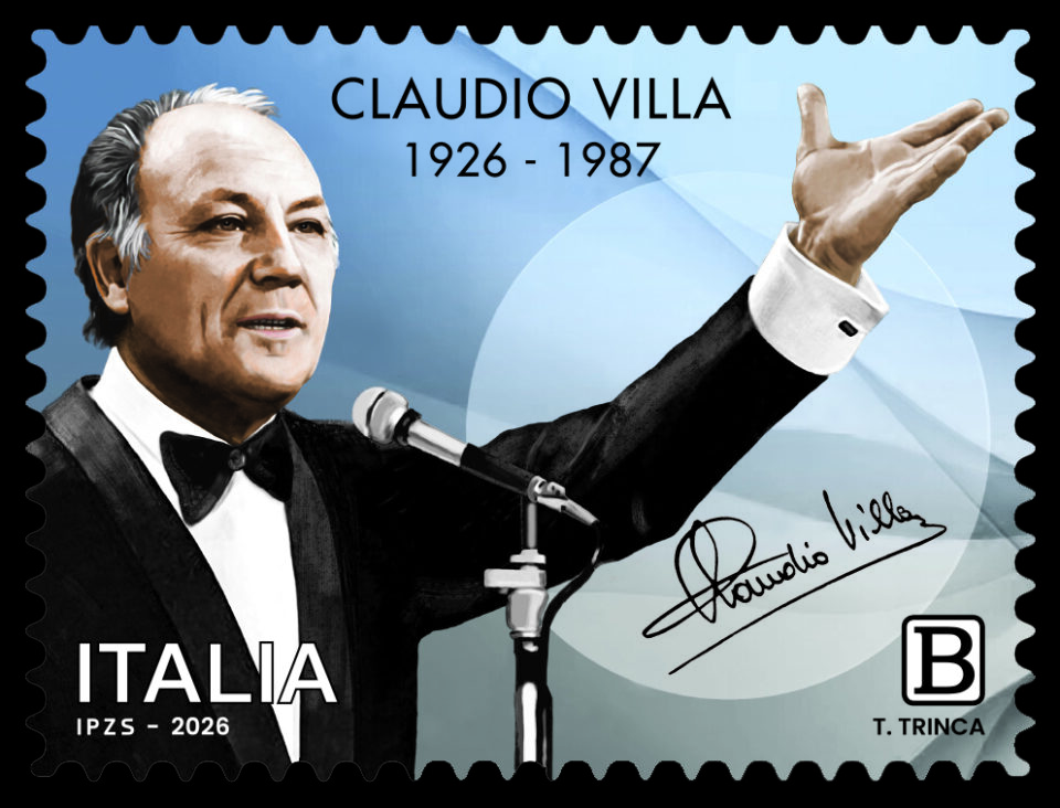 Poste Italiane comunica che il 29 gennaio 2026 verrà emesso dal Ministero delle Imprese e del Made in Italy un francobollo commemorativo di Claudio Villa, nel centenario della nascita, relativo al valore della tariffa B pari a 1,30€.
