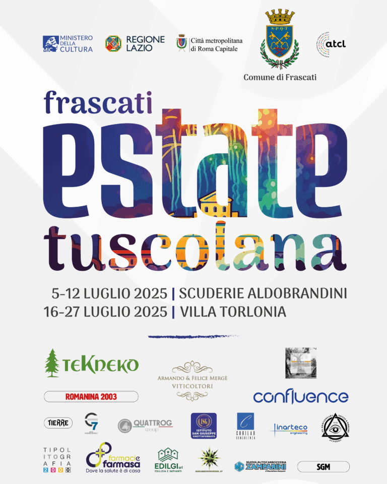 L’Estate Tuscolana 2025 è pronta a illuminare le serate estive di Frascati con un caleidoscopio di eventi pensati per incantare e coinvolgere un pubblico di ogni età e interesse. Dal 5 luglio al 27 luglio nel suggestivo Cortile del Museo Tuscolano delle Scuderie Aldobrandini e l’elegante Villa Torlonia, si trasformeranno in teatri a cielo aperto, pulsanti di arte e cultura. Un programma ricco e variegato accoglierà gli spettatori, offrendo un’esperienza immersiva nel mondo delle arti performative e visive. Un programma ricco e variegato accoglierà gli spettatori, offrendo un’esperienza immersiva nel mondo delle arti performative e visive, ospitando anche spettacoli teatrali, concerti, proiezioni cinematografiche, presentazioni di libri e molto altro.