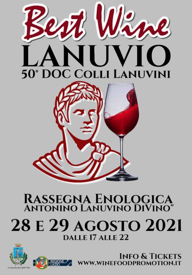Torna a Lanuvio, all’interno del Parco di Villa Sforza Cesarini, la Rassegna enologica Best Wine 2021. La manifestazione, che si svolgerà sabato 28 e domenica 29 agosto, celebrerà lo speciale anniversario dei 50 anni della DOC – COLLI LANUVINI e sarà dedicata all’Imperatore Lanuvino Antonino Pio. Questo speciale appuntamento patrocinato dal Comune di Lanuvio, oltre a rappresentare l’importante ruolo della viticoltura nel Lazio, avrà anche il senso di unire in un contesto di eccellenza la cultura e la storicità di Lanuvio con le diverse espressioni delle eccellenze produttive in esibizione. Con il ticket degustazione (€ 20) si avrà in dotazione calice e tracolla con la possibilità di effettuare 40 degustazioni nel percorso. Per partecipare occorrerà prenotarsi attraverso l’apposito link su www.winefoodpromotion.it