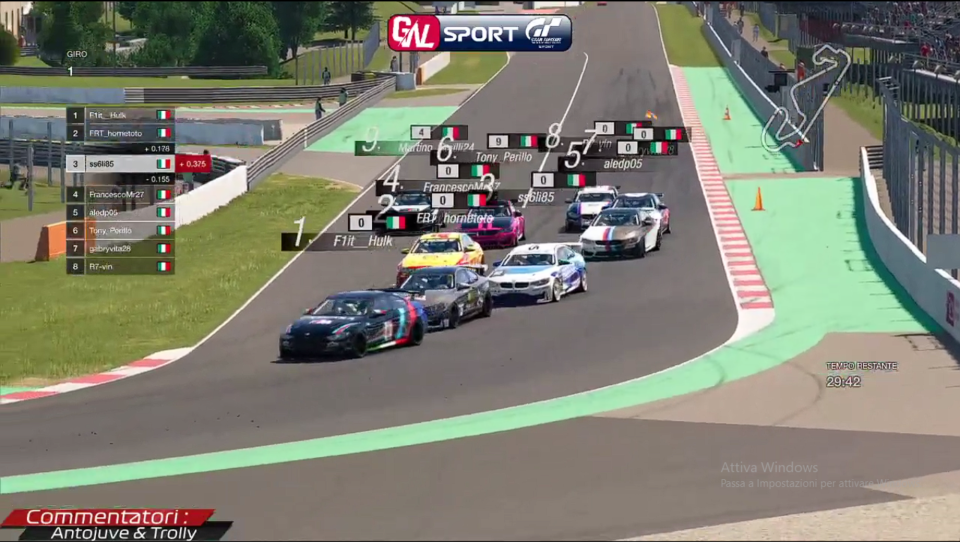 4° FrancescoMr27 (Francesco Marino) VOTO 7: prova sia in partenza che durante il primo stint di gara a superare Alfonso ma non riuscendo. PECCATO MA OTTIMO QUARTO POSTO!