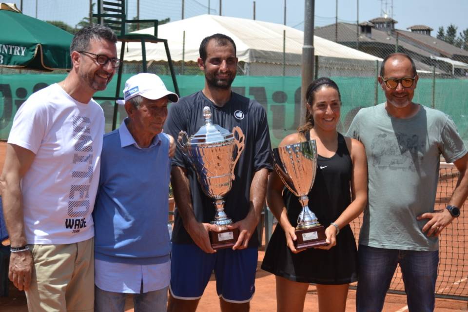 Un grande spettacolo culminato con due finali tirate e giocate sotto un sole cocente. E’ terminato domenica il torneo nazionale open “Città di Frascati”, organizzato dal Tc New Country Frascati con minuzia di particolari. La kermesse ha visto il trionfo del numero uno del tabellone maschile, quel Matteo Fago che recentemente è stato impegnato anche nelle qualificazioni degli Internazionali d’Italia, e della numero due di quello femminile, vale a dire Beatrice Lombardo. Il primo ha avuto la meglio con un doppio 7-5 di Daniele Spinnato (numero due del ranking), mentre la seconda ha piegato per 6-3, 6-4 una tenace Arianna Capogrosso (numero 4 del seeding). Nonostante la giornata molto calda, il Tc New Country Frascati ha visto la presenza di numerosi appassionati e curiosi che hanno gremito gli spazi ai bordi dei campi 1 e 2 dove si tenevano le finali in contemporanea: tra questi anche Fulvio Matteoni, amministratore delegato di Decathlon Italia che ha avviato una collaborazione commerciale col circolo tuscolano, e poi anche il sindaco di Frascati Roberto Mastrosanti e l’assessore ai Servizi sociali Alessia De Carli. “Sono contento per questo successo – ha dichiarato il vincitore del torneo maschile Matteo Fago – Tornare in questo circolo fa sempre piacere: ci sono venuto diverse volte per il torneo internazionale e mi sono sempre trovato molto bene. D’altronde la famiglia Molinari ha una grande passione e cultura tennistica”. Legata al circolo di via dell’Acquacetosa anche la vincitrice del tabellone femminile, Beatrice Lombardo. “I miei primi passi nel mondo del tennis li ho mossi proprio qui quando ero piccola. Per me è come tornare a casa e quindi aver conquistato questa vittoria rappresenta una soddisfazione doppia”. Nel corso della cerimonia di premiazione, il direttore sportivo Marcello Molinari ha sottolineato «l’ottimo livello tecnico di questo torneo, siamo soddisfatti per come sono andate le cose. Stiamo già lavorando per provare a organizzare di nuovo il torneo internazionale nella prossima stagione”.