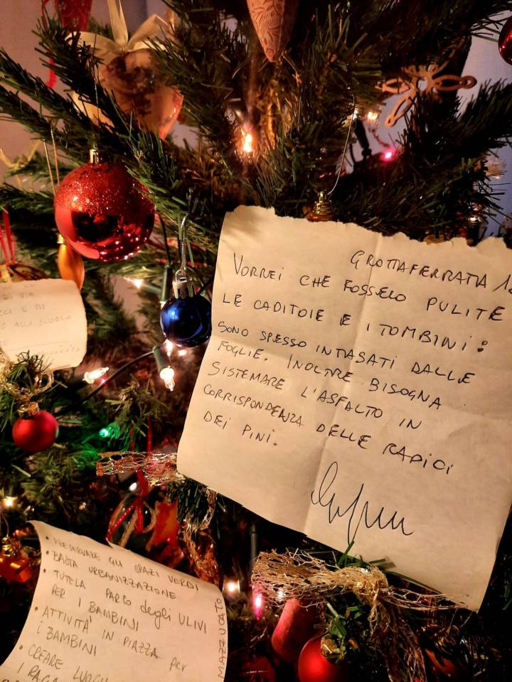 La due giorni di incontro e ascolto dei cittadini sotto le luci di un albero di Natale particolarmente creativo e inclusivo è stata ideata in uno spirito di continuità rispetto ai CIRCOLI TEMATICI DELLA PARTECIPAZIONE avviati da #FareRete Grottaferrata a Novembre 2021 e tutt’ora in corso. I circoli sono dei gruppi di lavoro dove i cittadini interessati a dare il proprio contributo al bene comune, insieme a vari esperti, si incontrano per elaborare proposte concrete finalizzate alla individuazione dei mezzi e delle strategie atte alla realizzazione dei punti programmatici scritti insieme alla cittadinanza, considerando prioritarie le esigenze di chi abita in zone periferiche.