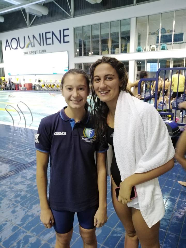 29 Ottobre h.10:45 – Ricomincia l’anno natatorio per l’F&D Waterpolis e i ragazzi e le ragazze di Roberto Cianfarani sono stati impegnati nella prima uscita stagionale all’Acquaniene. Due gare e ottimi risultati, per cominciare alla grande un’annata impegnativa e che porterà alla crescita degli atleti. Tutti i ragazzi e tutte le ragazze hanno migliorato i loro tempi personali, grazie a prestazioni grintose e battagliere. Sofia Polverini, classe 2007, ha migliorato di cinque secondi il suo tempo nei 100 rana e di otto secondi nei 200 rana. Sharon Haxhaj con il tempo di 2’53”1 nei 200 rana è migliorata di due secondi. Molto bene anche Lorenzo D’Uffizi, capace di abbassare di due secondi il tempo nei 100 stile aggirandosi intorno al minuto (60 secondi e 29 centesimi). Superlativa la prova di Valeria Di Giacomantonio, che ha gareggiato consecutivamente, e ha abbassato di due secondi il proprio nei 400 stile libero e ha portato il suo tempo a 2’44” nei 200 rana a ridosso dei tempi del pass per i campionati italiani. Il suo è stato il terzo tempo migliore della giornata. Continua il suo cammino verso i tempi limite anche Alessio Borro, nei 50 e nei 100 stile, con 24”8 e 54”7. Splendide prestazioni anche per Luca Tora, Marta Cianfarani, Marika Botticelli. “Un esordio positivo per i ragazzi” – ha detto Roberto Cianfarani alla fine delle gare – “considerando che sono cinque settimane che lavorano, siamo all’inizio e il volume di allenamento è elevato. Quello che è venuto è veramente un bel risultato” – ha concluso il tecnico – “e siamo fiduciosi per il futuro”. In foto c’è anche Simona Quadarella, nuotatrice italiana specializzata nello stile libero, medaglia d’oro nei 400 m, 800 m e 1500 m stile libero ai Campionati europei di Glasgow 2018; medaglia di bronzo nei 1500 m stile libero ai Campionati mondiali di Budapest 2017; esattamente 2 anni dopo, ai Campionati mondiali di Gwangju 2019, ha conquistato la medaglia d’oro nei 1500 m stile libero, stabilendo inoltre il record italiano precedentemente posseduto da Alessia Filippi. conquistando anche la medaglia d’argento nella gara degli 800 m stile libero. È stata inoltre medaglia d’oro nei 1500 m stile libero ai Campionati mondiali giovanili di Singapore 2015.