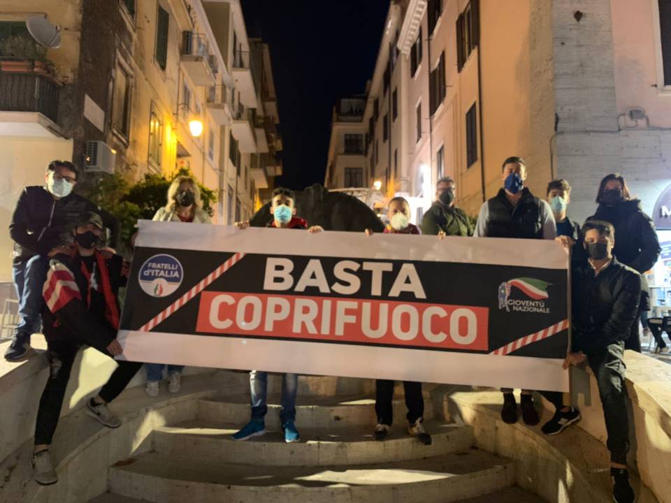 "Fratelli d'Italia e Gioventù Nazionale Albano sono scese in piazza domenica 16 maggio, come avvenuto anche nei giorni scorsi in tutta Italia, per la mobilitazione organizzata contro il coprifuoco imposto dal Governo nazionale.