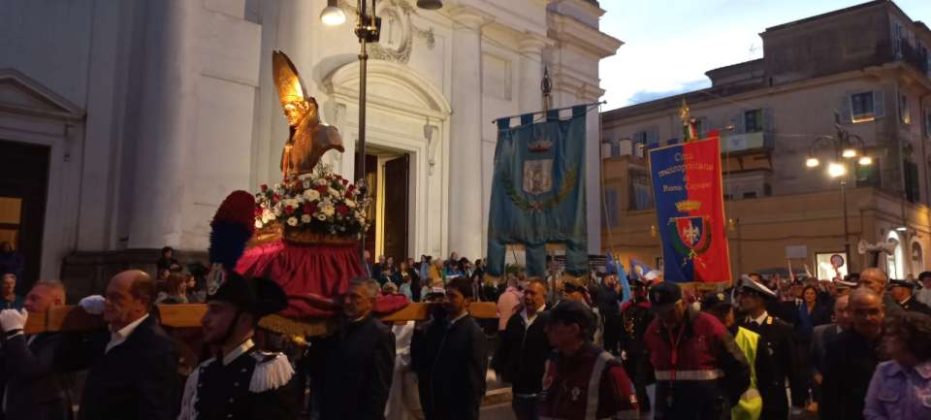 Durante la solenne processione, il Vicesindaco, impegnato in altra cerimonia, ha delegato la Consigliera Marta Bevilacqua a concludere i festeggiamenti. Presenti oltre ai Gonfaloni istituzionali dei Comuni limitrofi, quello della Città metropolitana di Roma.