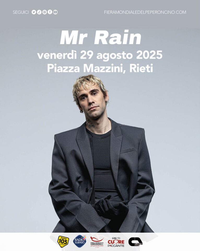Sarà MR RAIN ad aprire le grandi serate musicali dell’edizione 2025 della Fiera Campionaria Mondiale del Peperoncino di Rieti.