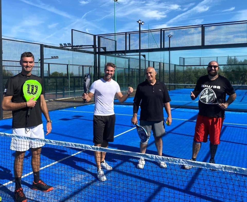 L’attore si è ben destreggiato nella specialità tanto in voga in questi anni giocando su uno dei nuovi campi del Free Time, circolo che vanta ben 7 spazi destinati al padel. Nella foto Montrucchio, papà di Mya e Orlando, posa proprio insieme al proprietario del circolo frascatano, Fabrizio Marcucci (a destra).