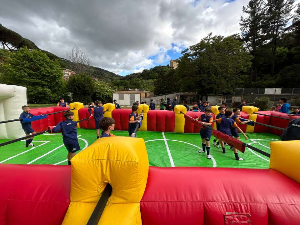 Un pomeriggio speciale per il gruppo degli Esordienti 2012 del Football Club Frascati. Il numeroso gruppo allenato da Gianluca Pietropaoli, Francesco Cantore e Alessio Giusti, la scorsa settimana, è stato protagonista dell’evento di “life foosball” (ovvero il “calcio balilla umano”) nell’ambito del progetto europeo Lif4All che mira a promuovere l’inclusione di bambini (di età compresa tra i 5 e i 15 anni) con disabilità visiva o agli arti attraverso la promozione di questo sport. “Abbiamo aderito a questo progetto ad agosto scorso – dice il responsabile organizzativo della Scuola calcio Maurizio Bucci – Poi abbiamo partecipato a un workshop che si è tenuto a Roma a dicembre e infine abbiamo lavorato per ospitare questo evento la scorsa settimana. È stato allestito con alcuni gonfiabili questo grosso campo di “calcio balilla umano” e sono state fatte delle partite sei contro sei per tutta la durata della seduta. I nostri piccoli calciatori, a rotazione, hanno giocato al “life foosball” e si sono divertiti tanto, capendo anche l’importanza della condivisione e dell’integrazione dei coetanei meno fortunati”. L’ennesimo progetto rivolto al sociale che si sviluppa all’interno del Football Club Frascati: una strada intrapresa con convinzione già dall’ormai ex presidente Claudio Laureti e sposata in pieno anche dal neo proprietario Giammarco Raparelli. Il “calcio balilla umano” è ancora un’attività inedita nell’ambito delle attività paralimpiche, ma ha molte potenzialità che lo rendono fortemente adatto a garantire le stesse opportunità di accesso e di competizione ad atleti accoppiati e disabili in squadre miste. Le squadre miste di biliardino possono davvero offrire un contesto positivo in cui le barriere e lo stigma crollano e i bambini con disabilità acquisiscono abilità sociali vitali, sviluppano l’indipendenza e diventano capaci di agire come agenti di cambiamento.