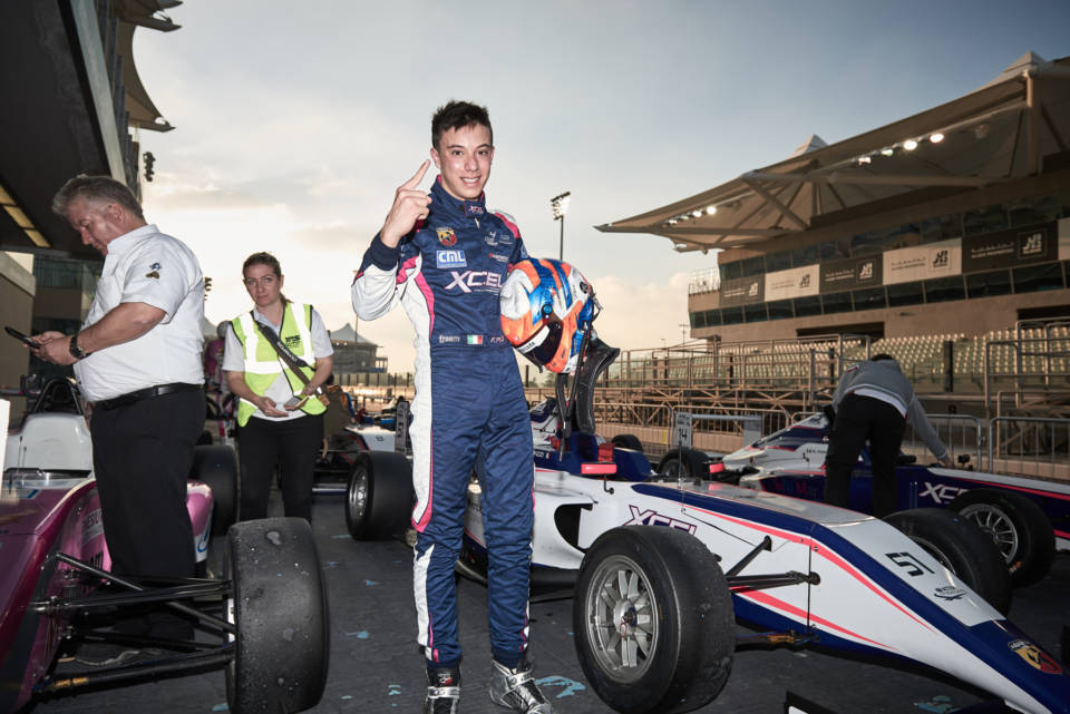 Un’altra vittoria e la leadership del campionato fermamente nelle sue mani: Francesco Pizzi finisce il terzo round della F4UAE ad Abu Dhabi guidando il campionato davanti a Nico Göhler. Nonostante la vittoria nell’ultima gara, non è stato tutto facile per lui nell’arco del weekend. Francesco inizia con il giro veloce nelle Free Practice 1, mettendo a referto il secondo giro veloce in Qualifica. In Gara 1, mentre Francesco era in seconda posizione, una pietra buca il radiatore causando un problema tecnico che non gli permette di tagliare il traguardo. In Gara 2 Francesco recupera fino alla 5° posizione assoluta e in Gara 3 sale sul terzo gradino del podio dopo una cruenta battaglia con Fluxa e Göhler. Finalmente in Gara 4, dopo un weekend difficile, Francesco torna nella sua posizione preferita: 1°. “Nel complesso è stato un weekend tosto e dimostra che non è finite fino alla fine. Nonostante il gap accumulato nei round precedenti, non ci si può mai rilassare al 100%. Queste sono le corse! Ad ogni modo, abbiamo dimostrato ancora una volta che possiamo essere molto competitivi. Siamo stati nella top 5 in tutte le gare e solo un sasso nel radiatore poteva fermarci! Grazie a Xcel Motorsport per l’impegno, grazie ai miei sponsor, alla mia famiglia ed al mio coach Gimmi Bruni per il supporto. Ora testa al prossimo round a Dubai settimana prossima.”