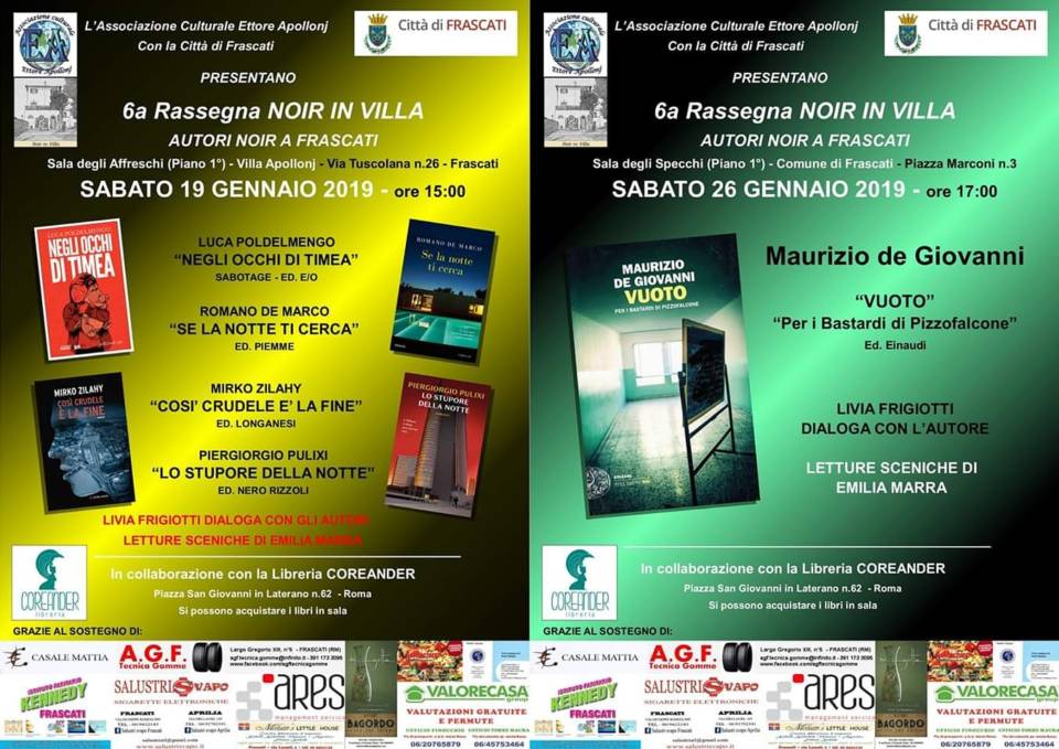 6a Rassegna NOIR IN VILLA – Autori Noir a Frascati – 19 e 26 gennaio 2019