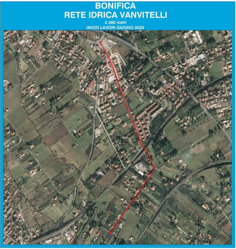 Vicolo di Grotte Maria tratto, da Via Grotte Maria a Via L. Vanvitelli: potenziamento di circa 225,00 ml della condotta esistente dn50 a dn100 con relativi portatori;