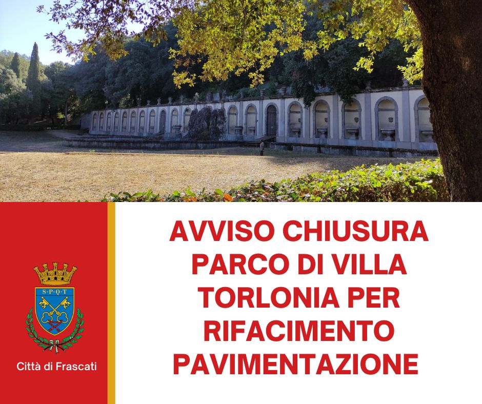 “Si avvisa la cittadinanza che a partire da martedì 1 ottobre il Parco di Villa Torlonia sarà chiuso per tre settimane, o comunque fino al termine dell’intervento, per permettere i lavori di rifacimento dei viali interni ed esterni. La chiusura è necessaria per mettere in sicurezza l’area oggetto dei lavori, vista la presenza di numerosi mezzi pesanti d’opera, che non sono compatibili con il transito pedonale”. Lo rende noto il Comune di Frascati sui suoi canali social