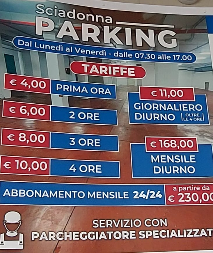 “Vogliamo iniziare subito a lavorare. Siamo adiacenti all’omonimo ufficio postale principale di Frascati – dichiarano i titolari. Offriamo un servizio con parcheggiatore specializzato : la prima ora il parcheggio costerà 4 euro e abbiamo varie offerte (vedi foto ndr) per le diverse esigenze- prosegue la proprietà. Vogliamo fare rete con le attività di prossimità e con quelle del territorio tuscolano e non solo. Ecco i nostri contatti per info: sciadonnaparking@gmail.com e 3428526802 – conclude la proprietà dello Sciadonna Parking”.