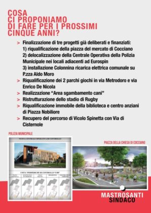 “. Lo rende noto l’area comunicazione del candidato sindaco Roberto Mastrosanti.