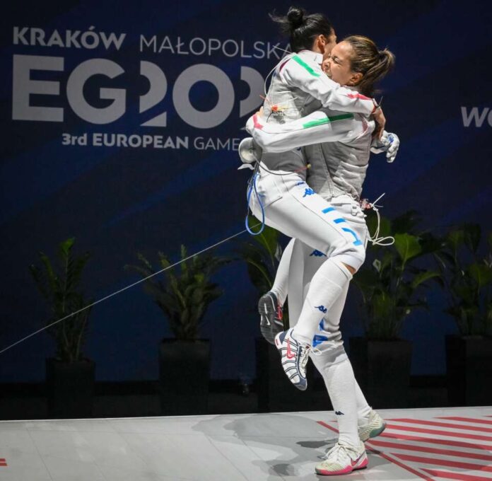Un ottimo bottino in vista dell’appuntamento clou della stagione. Gli atleti del Frascati Scherma sono tornati da Cracovia, dove si sono disputati i Giochi Europei, con una valigia ricca di un oro individuale, due ori e due argenti a squadre. Il sigillo individuale lo ha ottenuto il polacco Michael Siess che, da padrone di casa, è riuscito a trionfare nella prova di fioretto sfruttando anche l’assenza di qualche big. L’allievo di Luca Simoncelli, che ormai da tempo si allena al Frascati Scherma, è stato concentrato e determinato dalla prima all’ultima stoccata: dopo aver superato in semifinale il belga Van Campenhout per 15-7, nell’atto conclusivo Siess ha sconfitto il danese Winterberg-Poulsen con un più tirato 15-13 e ha regalato una grande gioia al pubblico di casa. Nella stessa gara vanno segnalati anche il 18esimo posto dello spagnolo Carlos Llavador e il 36esimo dello slovacco Cedrik Serri e dell’altro spagnolo Ignacio Breteau, mentre nella medesima gara al femminile va ricordato l’11esimo posto dell’altra iberica Maria Marino: tutti fanno parte della ricca “colonia internazionale” di atleti che si allenano al Frascati Scherma. Gli italiani, invece, hanno dato il loro “corposo” contributo nelle prove a squadre che tra l’altro assegnavano punti pesanti per la qualifica ai Giochi Olimpici di Parigi 2024. La nazionale di fioretto femminile, che contava sulla presenza di Alice Volpi e Francesca Palumbo (oltre che delle altre azzurre Martina Batini e Martina Favaretto), si è confermata all’altezza del soprannome di “Dream Team” ed è andata a prendersi l’oro battendo in finale la Francia per 45-40. I transalpini hanno “pianto” anche nella gara a squadre di fioretto maschile dove l’atleta del Frascati Scherma Daniele Garozzo ha trascinato gli altri azzurri alla conquista dell’oro col punteggio di 45-39. A completare il quadro ci hanno pensato Michele Gallo e Chiara Mormile (rispettivamente 17esimo e 12esima nelle prove individuali): assieme alle squadre italiane di sciabola hanno conquistato un argento pesante, cedendo all’ultimo assalto in entrambi i casi ancora contro la Francia.