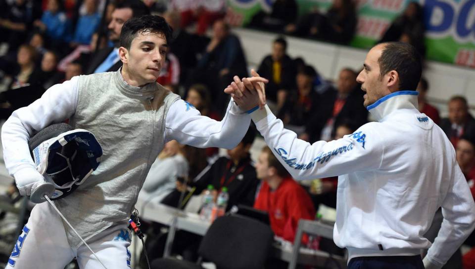 E’ arrivato ad un passo dalle semifinali, dove avrebbe potuto giocarsi una medaglia. Ma la prestazione del fiorettista del Frascati Scherma Guillaume Bianchi alle Olimpiadi Giovanili di Nanchino di stamattina (ora italiana) è stata certamente soddisfacente. Proprio lo stesso giovane atleta del club tuscolano, allenato dal maestro Marco Ramacci (nella foto di Augusto Bizzi assieme al fiorettista), aveva detto alla vigilia della competizione giovanile a cinque cerchi di non sentirsi al top della forma, visto l’intervento subito un paio di mesi fa allo scafoide. «Cercherò comunque di dare il massimo» aveva promesso Bianchi e così è stato. Nella fase a gironi, il giovane atleta del Frascati Scherma ha ottenuto quattro vittorie e due sconfitte: proprio questi k.o. gli sono costati, probabilmente, un tabellone più insidioso che ne ha condizionato la gara. Dopo aver superato comodamente l’algerino Heroui col netto punteggio di 15-6, Bianchi si è trovato di fronte il campione europeo Cadetti (e medaglia di bronzo mondiale come lui), il francese Roger che lo ha battuto col punteggio di 15-13. «Ho sentito Guillaume – dice il suo maestro Ramacci – e mi è parso abbastanza soddisfatto della prova sostenuta. E’ chiaro che quando si arriva ad un soffio dalla semifinale un po’ di rammarico rimane, ma più che altro è legato al fatto che non abbiamo potuto preparare al meglio questo appuntamento per colpa dell’infortunio. Tra l’altro il francese è certamente un ottimo atleta e una sconfitta contro di lui non è un “affronto”. Magari un paio di semifinalisti sarebbero stati molto più alla sua portata, ma in una competizione di questo tipo non c’è spazio per queste recriminazioni». L’Olimpiade Giovanile di Bianchi, comunque, non è ancora terminata. «Domani (giovedì, ndr) Guillaume sarà impegnato nella gara a squadre mista – dice Ramacci – e cercherà di conquistare una medaglia in una gara particolarissima visto che non sarà affiancato da italiani, bensì da altri due compagni europei e cioè lo stesso Roger e il polacco Rzadkowski».
