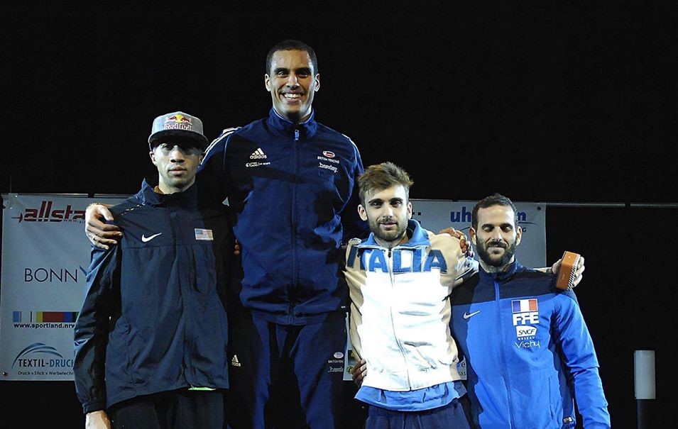 Un week-end ricchissimo per i colori del Frascati Scherma, a tutti i livelli. All’estero e in Italia, coi grandi e tra i giovani: un fine settimana coi fiocchi. Il giro parte con la prova di Coppa del Mondo di fioretto che si è disputata ad Algeri nella sua versione femminile e a Bonn in quella maschile. Se dalle ragazze (Erba, De Costanzo e Cipriani che erano accompagnate dal maestro Fabio Galli presente nello staff azzurro) non sono arrivati risultati di rilievo, tra i ragazzi a salire sugli scudi (ancora una volta) è stato Daniele Garozzo, capace di centrare un bellissimo terzo posto individuale e un secondo a squadre assieme all’altro “frascatano acquisito” Andrea Baldini (28esimo nell’individuale) e al resto del quartetto azzurro completato da Cassarà e Avola. E’ stata la Russia a fermare in finale gli azzurri, comunque già sicuri dell’approdo alle Olimpiadi di Rio. Per ciò che concerne la gara individuale, Garozzo è stato stoppato solo in semifinale dal britannico Davis che poi si è aggiudicato la prova. In Germania hanno gareggiato anche Aspromonte, Simoncelli e Rosatelli senza grande incisività.