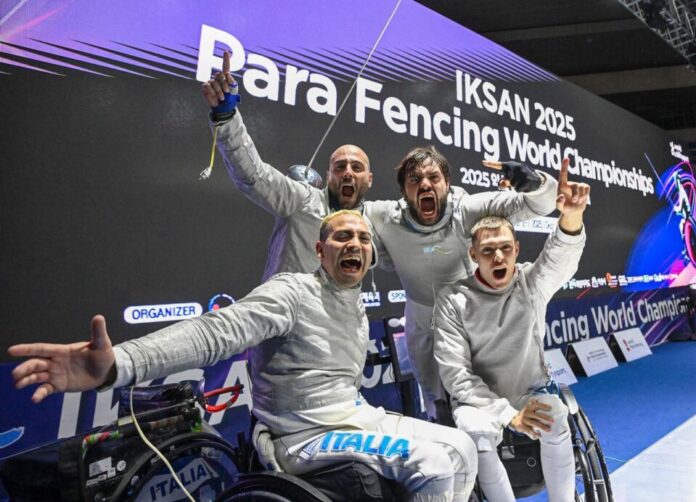 Un altro titolo mondiale per il Frascati Scherma. Alla kermesse iridata dedicata ai paralimpici, il club tuscolano ha festeggiato l’oro a squadre nella sciabola conquistato da Gianmarco Paolucci e dai suoi compagni di nazionale (Edoardo Giordan, Mattia Galvagno e Andrea Jacquier) nella città sudcoreana di Iksan. A questo si è aggiunto anche l’argento a squadre del fioretto femminile con l’altra atleta del Frascati Scherma Loredana Trigilia che, da capitana e veterana del gruppo ha dato un importante contributo alla squadra azzurra. Il percorso dell’Italia della sciabola si è aperto col netto successo sulla Corea padrona di casa per 45-31 negli ottavi di finale, poi nei quarti gli azzurri hanno superato la Polonia per 45-39, ma è in semifinale che hanno fatto una vera impresa battendo (per la prima volta) la fortissima Cina all’ultima stoccata (45-44). Il successo ha spalancato a Paolucci e compagni le porte della finale contro l’Ucraina che gli azzurri hanno interpretato magistralmente e vinto anche in questo caso all’ultimo respiro (45-44). “Davvero una grande gioia – dice Paolucci – Non sono sorpreso del successo perché sapevamo di essere molto forti, ma vincere un titolo mondiale non è mai scontato e ancora devo realizzare bene cosa abbiamo combinato. Abbiamo battuto le nazionali più importanti della disciplina e quindi ci siamo meritati questa medaglia d’oro, frutto di un buon equilibrio interno tra elementi di maggiore esperienza internazionale come il sottoscritto e Giordan e altri giovani emergenti come Galvagno e Jacquier che hanno portato entusiasmo. L’assalto con la Cina è stato il più duro in assoluto visto che partivamo da sfavoriti: quel successo ci ha regalato una grande forza in vista della finale con l’Ucraina. Vorrei dedicare questo oro a tutto il gruppo azzurro e ai miei compagni di squadra, ma anche al gruppo sportivo paralimpico della Difesa e soprattutto al Frascati Scherma e a tutte le persone che mi seguono da sempre e hanno permesso tutto questo”. Paolucci ha disputato anche le gare individuali di sciabola (terminando 17esimo) e di fioretto (21esimo) nella categoria B: “Non mi va di parlarne per una serie di motivi. Comunque venivo da un problema fisico che ha condizionato la mia preparazione al mondiale e alcune gare ad Iksan. In ogni caso nel corso della gara a squadre di sciabola sono riuscito a battere tutti gli atleti che sono andati a podio nell’individuale e questo per me è un aspetto significativo. Ora stacco un po’ e penserò al mio recupero fisico e mentale: a novembre c’è in programma una gara di Coppa del Mondo in Thailandia, ma devo vedere se parteciperò o meno”.