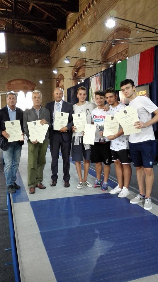 Il Frascati Scherma torna da Piacenza, sede della Festa della scherma 2015, con alcuni importanti premi relativi alla passata stagione e con una finale di Coppa Italia persa nella finale a squadre di sciabola. I quattro moschettieri frascatani Federico Riccardi, Giovanni Palumbo, Edoardo Ramunno e Flavio Mancini hanno provato a giocarsi il tutto per tutto contro la squadra friulana della Gemina scherma di San Giorgio di Nogaro, ma alla fine gli avversari l’hanno spuntata con il punteggio di 45-33. Perdere non fa mai piacere, ma il club del presidente Paolo Molinari (presente in terra emiliana) si è abbondantemente consolato con le premiazioni relative all’annata 2014-15. La più prestigiosa è stata riconosciuta al maestro di fioretto Marco Ramacci, insignito del “Seminatore d’oro” che viene dato al miglior tecnico emergente italiano. Se non fosse bastato, il Frascati Scherma ha visto premiato anche il fiorettista Damiano Rosatelli per la bellissima stagione disputata lo scorso anno e per i numerosi risultati ottenuti. Insomma un pieno di riconoscimenti che è certamente un grande stimolo in vista della nuova stagione. Intanto a Roma si è disputata la kermesse della “maratona di scherma”, organizzata da una società capitolina, che ha visto la presenza di diversi atleti tuscolani di spessore. Il Frascati Scherma, inoltre, ha ufficializzato l’approdo nella sua palestra da parte di interessanti talenti che hanno scelto il club del presidente Molinari come società di allenamento: tra questi gli ex Ariccia Camilla Fondi (sciabolatrice che sarà allenata da Lucio Landi), Andrea Funaro (fiorettista che sarà guidato da Marco Ramacci) e Veronica Ermacora (sciabolatrice che verrà diretta dal maestro Marco Aquili) oltre all’ex Latina Arianna Pappone, che continuerà ad allenarsi col suo maestro, il papà Gianni.