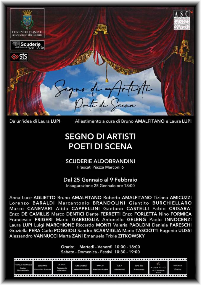 Cosa c’è dietro il lavoro dei grandi scenografi e costumisti italiani? Impegno, fantasia e tanta cultura. Le Scuderie Aldobrandini ospitano l’altra faccia dell’arte e della tecnica di creare e ideare le scene per una rappresentazione teatrale, cinematografica o televisiva. Da una idea di Laura Lupi e a cura di Bruno Amalfitano nasce la mostra Segno di artisti, poeti di Scena, che focalizza l’attenzione sull’attività meno conosciuta dei grandi nomi della scenografia italiana permettendo di dialogare con i grandi Maestri, sul loro un universo intimo fatto di dipinti, disegni, tecniche miste arredi, oggetti. L’evento che s’inaugura il 25 gennaio alle 18 propone in esposizione opere di: Anna Luce Aglietto, Bruno e Roberto Amalfitano, Tiziana Amicuzzi, Roberto Baraldi, Marco Antonio Brandolini, Giacinto Burchiellaro, Marco Canevari, Alida Cappellini, Gaetano Castelli, Fabio Crisarà, Enzo De Camillis, Marco Dentici, Dante Ferretti, Enzo Forletta, Nino Formica, Francesco Frigeri, Mario Garbuglia, Antonello Geleng, Paolo Innocenzi, Laura Lupi, Luigi Marchione, Riccardo Monti, Valeria Paolini, Daniela Pareschi, Graziella Pera, Carlo Poggioli, Sandro Scarmiglia, Mario Tasciotti, Emanuela Trixie Zitkowsky, Eugenio Ulissi, Alessandro Vannucci, Marta Zani. «Una mostra che la Città di Frascati è orgogliosa di ospitare – dice Roberto Mastrosanti, Sindaco di Frascati – non solo per il valore dell’esposizione stessa ma per confermare quanto il nostro territorio sia legato alla cultura anche cinematografica del nostro Paese. Set ideale per decine e decine di film ma anche luogo che ha ospitato i teatri dell’effimero delle grandi feste in Villa di barocca memoria». Arredi classici e contemporanei, sculture, dipinti e oggetti di scena arricchiscono la galleria di opere pittoriche dei più importanti scenografi e costumisti italiani. «Opere intime, al di là della committenza, che svelano un’alta faccia delle loro poliedriche personalità artistiche – spiega Emanuela Bruni, Assessore alla Cultura -. I percorsi di ciascuno, le passioni culturali e di ricerca estetica. Un evento che nel panorama culturale del nostro Paese tiene alta la bandiera dell’Italian way of life, tanto amato nel mondo, frutto di emozioni, passione gusto ed eleganza. La mostra non è che un modo per far conoscere la scintilla artistica che c’è in molti che fanno questo lavoro, e che a volte, per eccesso di pudore, viene tenuta nascosta in un armadio – dichiara la curatrice Laura Lupi -. Qualcuno danza, qualcuno fa l’attore, qualcuno disegna gioielli o entra nel mondo della moda. A volte quella nascosta parte artistica può farci scoprire che la nostra esperienza di scenografi-costumisti, così eclettica, ci ha fatto trovare una strada più importante, e allora seguiamo anche quella, come è successo a molti di noi».