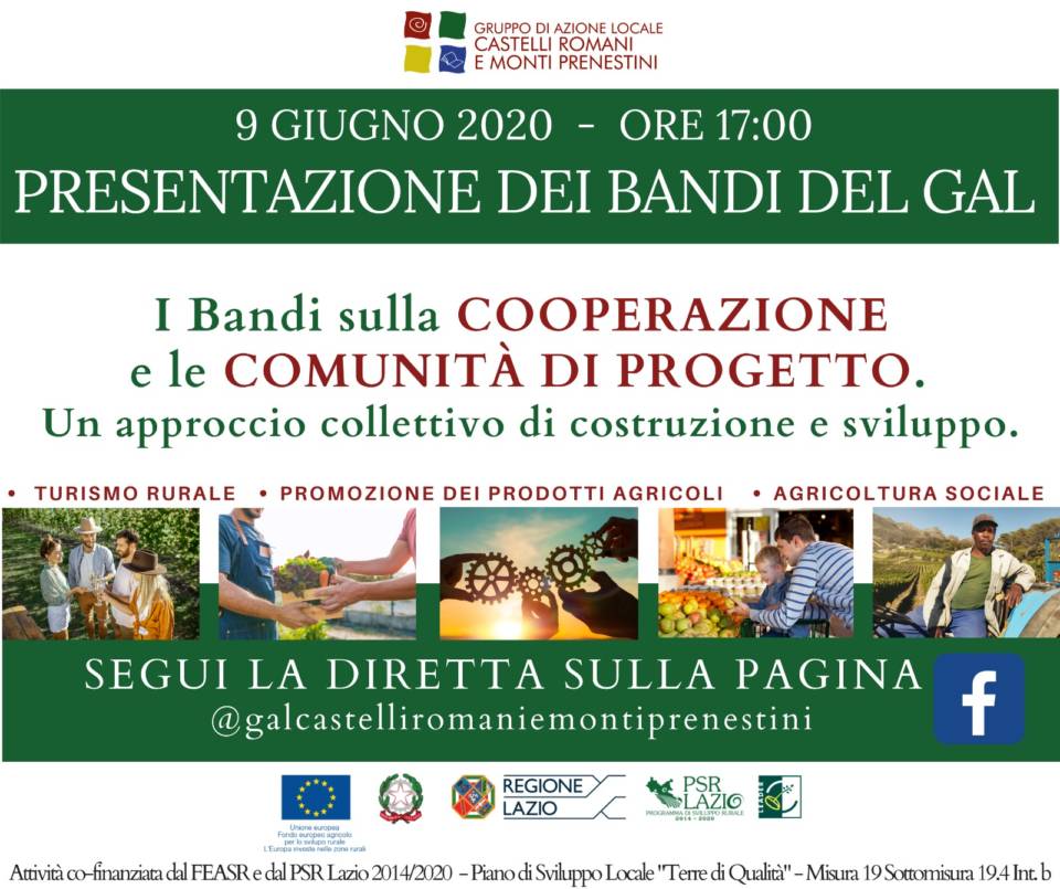 Martedì 9 giugno web live conference del Gal Castelli Romani e Monti Prenestini  per presentare i tre bandi dedicati alla cooperazione