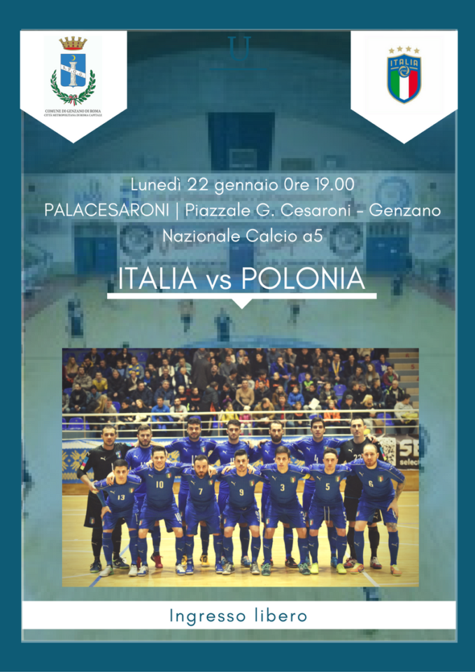 A Genzano la nazionale italiana di Calcio a 5: appuntamento per lunedì 22 gennaio al PalaCesaroni dove si svolgerà la partita amichevole Italia-Polonia