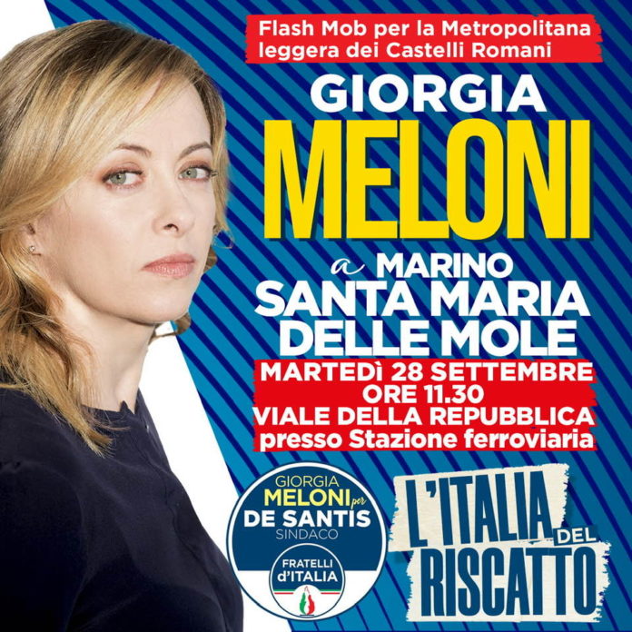 “Il progetto della metropolitana leggera dei Castelli Romani deve tornare centrale nella agenda politica nazionale. Per questa ragione, insieme alla nostra leader Giorgia Meloni, Fratelli d'Italia ha organizzato un flashmob su questo importante e improcrastinabile progetto di mobilità. L’iniziativa - alla quale prenderà parte anche il candidato sindaco di Fratelli d’Italia al Comune di Marino, Fabrizio De Santis - si svolgerà martedì 28 settembre a Santa Maria delle Mole, frazione di Marino, presso la stazione ferroviaria in Viale della Repubblica, a partire dalle ore 11.30.
