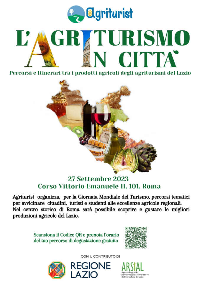 In occasione della Giornata Mondiale del Turismo, Agriturist Lazio, con il contributo di Arsial e della Regione Lazio, presenta il progetto dei percorsi tematici, al fine di fare avvicinare cittadini, turisti e studenti, ai prodotti tipici regionali.