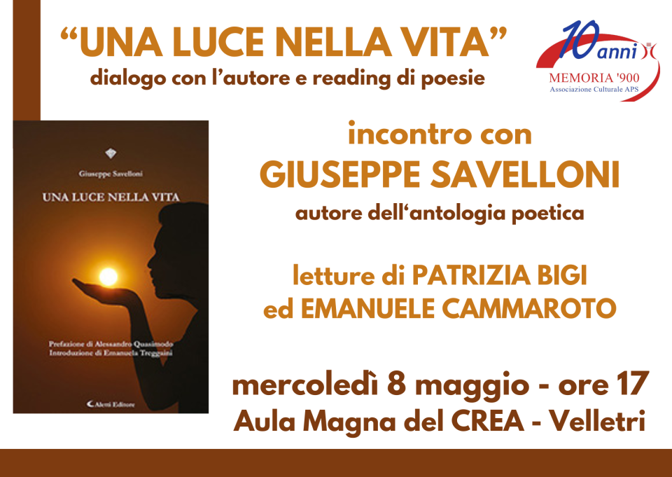 Giuseppe Savelloni presenta “Una luce nella vita”, antologia di poesie inedite, con Memoria ‘900 al CREA