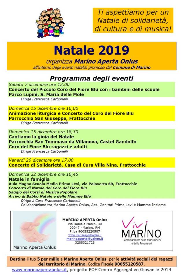 Gli eventi di Marino Aperta Onlus per Natale 2019
