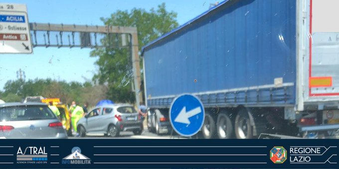 A90 Raccordo Anulare code per incidente in carreggiata interna tra Colombo e ViaDelMare. Lo riferisce Astral Infomobilità intorno alle 13 del 23 giugno