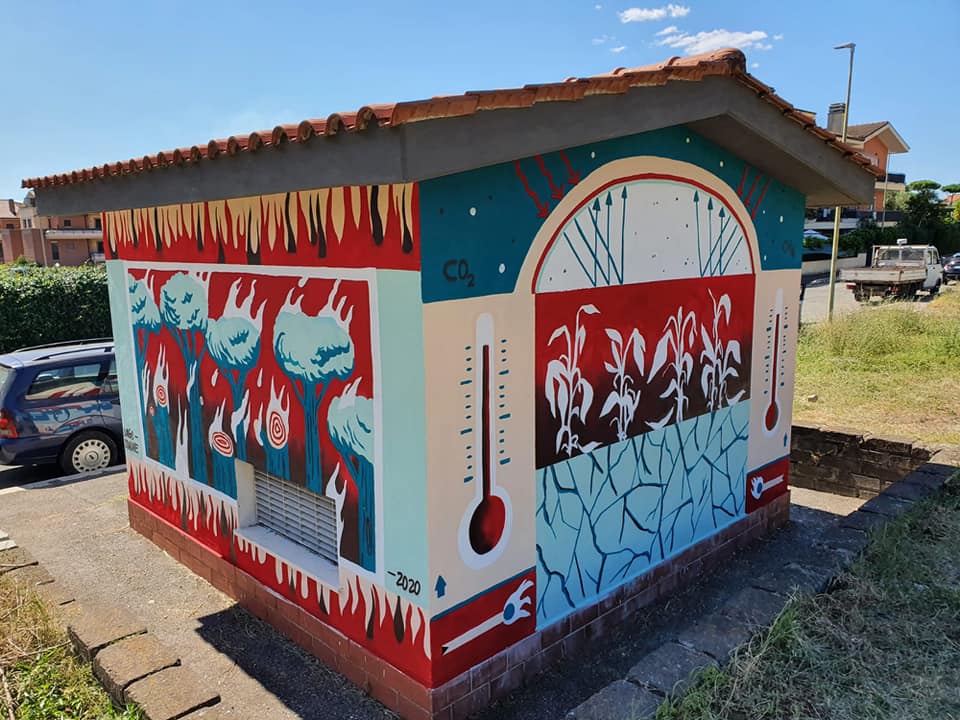 Una nuova cabina elettrica di E-Distribuzione di Pavona-Albano Laziale diventa una bella e intensa opera grazie all’artista bolognese Luogo Comune. Dalla collaborazione tra la società del Gruppo Enel che gestisce la rete a media e bassa tensione e il Museo di Street Art dei Castelli (Musac) è nata infatti l’idea di realizzare un’opera che pone l’accento sul delicato tema del cambiamento climatico, che causa sempre con maggiore frequenza fenomeni meteorologici estremi come trombe d’aria e bombe d’acqua, desertificazione, scioglimento dei ghiacci, innalzamento dei mari, diffusione di malattie tropicali. L’impatto del clima non è equo, perché chi ha meno non ha alcuna possibilità di affrontare i costi delle conseguenze. “Grazie ai dipinti dell’artista di Bologna, Luogo Comune, vogliamo contribuire a mantenere alta anche nella zona dei castelli romani l’attenzione su un tema di grandissima attualità come quello del cambiamento climatico e lo facciamo in collaborazione con un gruppo leader mondiale nel settore delle energie rinnovabili”, afferma Marco Alteri, Presidente del Musac. Nel murales viene raffigurato l’effetto serra provocato dalle emissioni di anidrite carbonica e metano, con conseguente innalzamento delle temperature, desertificazione e impossibilità di coltivare i prodotti necessari al sostentamento di intere popolazioni. Sui lati sono rappresentati gli incendi, innescati dall’uomo, che ormai sono responsabili del 40% delle emissioni di anidrite carbonica e hanno devastato Australia, Amazzonia, Africa e ultima in ordine di tempo la Siberia, sulla parete sinistra ha disegnato lo scioglimento del ghiaccio ai poli, con conseguente rischio estinzione per gli orsi polari e sul frontale ha disegnato le emissioni di gas serra da parte dell’uomo, con sei clessidre che scandiscono il tempo che ci resta. “Siamo sempre lieti di dare spazio alla Street Art e questa iniziativa – commenta il Responsabile E-Distribuzione della Zona Roma Esterna Rieti Antongiulio De Lazzari – valorizza ulteriormente la nostra presenza sul territorio. Le cabine elettriche sono importanti snodi per la distribuzione di energia e oggi le possiamo vedere in un’altra veste, reiventate come spazi artistici e integrate sempre più con l’ambiente, dando vita ad un interessante connubio tra tecnologia, energia e arte. Le nostre cabine, sempre più oggetto di innovazione tecnologica per fornire un servizio elettrico sempre migliore, diventando così anche elemento di attrazione dal punto di vista estetico ed artistico, con benefici per la sostenibilità ambientale, il decoro urbano e la diffusione della cultura”. L’iniziativa si inserisce nel contesto del progetto di Street Art portato avanti da E-Distribuzione che da poco ha chiuso anche la Street Art Challenge, un contest social che negli ultimi mesi ha visto il confronto delle più belle opere realizzate sulle cabine elettriche, in una sfida che abbraccia tutto il territorio nazionale, dando vita a una competizione all’insegna del colore e dei contenuti. A ottobre il MUSAC organizzerà un tour gratuito dedicato agli insegnanti dei Castelli: un modo non solo per parlare di street art, ma anche per affrontare i temi raffigurati nei murales, quali mafia e legalità, inclusione, lotta al cambiamento climatico, istruzione e città a misura di bambino”. Lo rende noto il MUSAC.