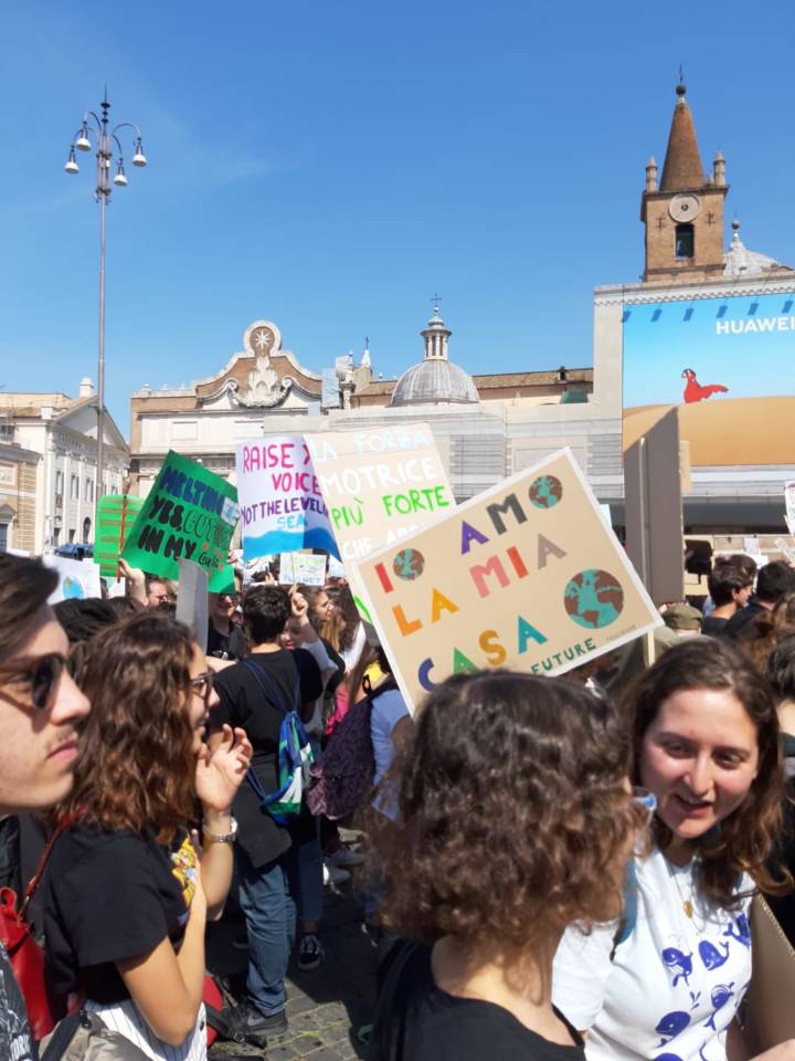 Circa 25.000 ragazzi in Piazza del Popolo a Roma per Greta Thunberg al Friday for Future Italia.