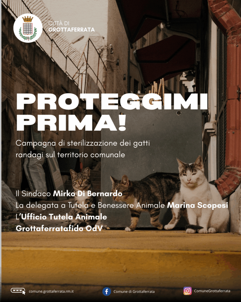 La campagna, realizzata grazie alla sinergia tra il Comune, l’Ufficio Tutela Animali e l’associazione Grottaferratafido OdV, prevede interventi veterinari mirati e controllati sui gatti randagi presenti sul territorio di Grottaferrata nel pieno rispetto della normativa vigente.