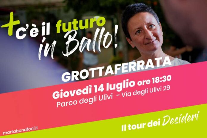 Il Tour dei Desideri del Lazio, lanciato dalla consigliera Marta Bonafoni, arriva anche a Grottaferrata. Appuntamento oggi, giovedì 14 luglio, a partire dalle ore 18:30 presso il Parco degli Ulivi.