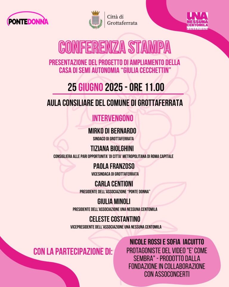 «La Casa di semi autonomia è un progetto a cui l’Amministrazione di Grottaferrata tiene particolarmente, e il suo ampliamento ci rende ora orgogliosi. Sarà possibile accogliere un numero maggiore di donne vittime di violenza e i loro figli, e garantire il loro sicuro reinserimento nella società, dopo l’uscita dalle case rifugio. Un ringraziamento a tutti i volontari e le volontarie che hanno reso possibile restituire alla collettività un bene sottratto anni fa all’illegalità. Ringrazio la fondazione Una Nessuna Centomila per il supporto a questo progetto», dichiara il Sindaco Mirko Di Bernardo.