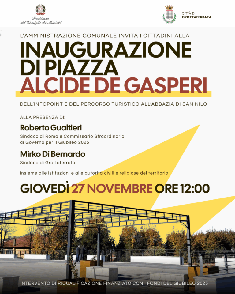 La cerimonia di inaugurazione si svolgerà alla presenza del Sindaco di Roma Roberto Gualtieri, in veste di Commissario Straordinario di Governo per il Giubileo 2025, del Vicesindaco Metropolitano Pierluigi Sanna, del Sindaco di Grottaferrata Mirko Di Bernardo e di tutta l’Amministrazione comunale cryptense.