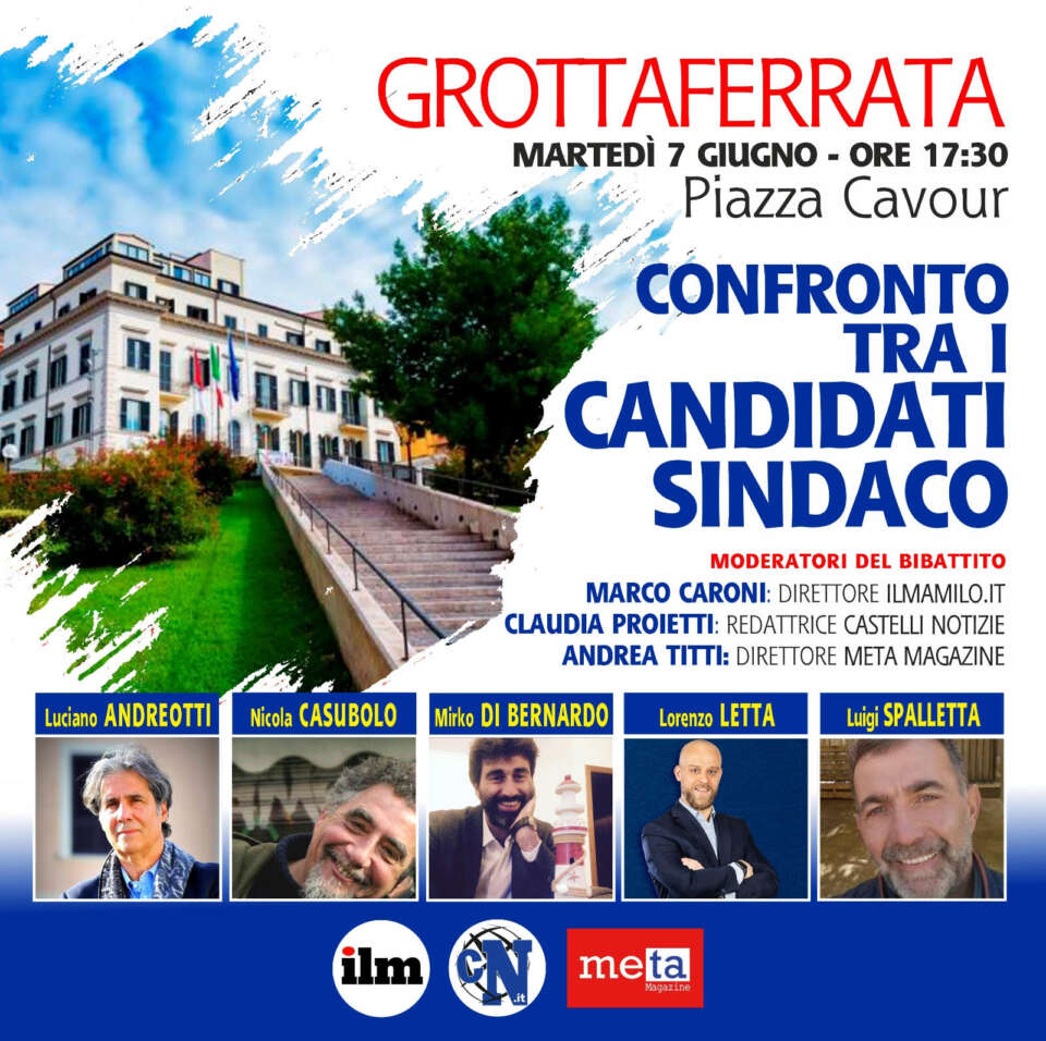 Le testate giornalistiche: Il Mamilio, Meta Magazine e Castelli Notizie, promuovono per il giorno martedì 7 Giugno un confronto pubblico in piazza tra i candidati a Sindaco di Grottaferrata, in vista del primo turno delle elezioni amministrative.