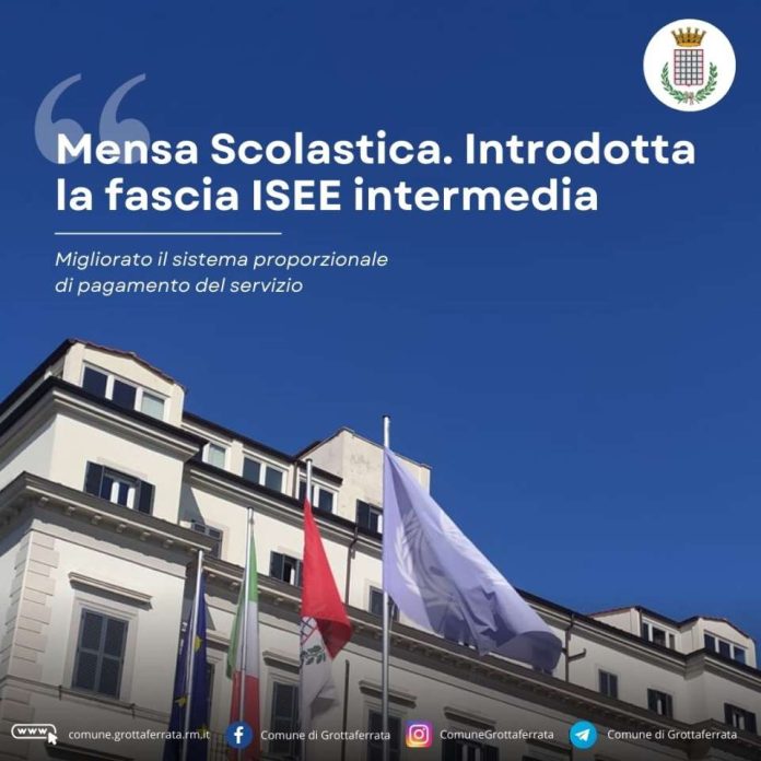 Grottaferrata – Mensa scolastica: introdotta la fascia ISEE intermedia. “Migliorato il sistema proporzionale di pagamento del servizio”